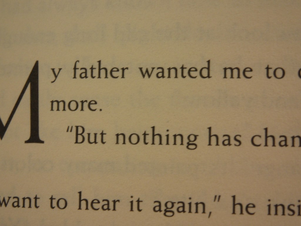 Opening a book and reading the first word: father