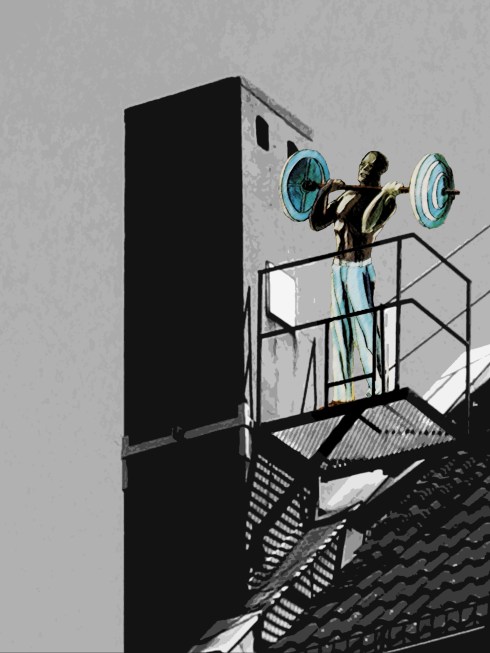 Walking a street stepping on the metal speedbumps
