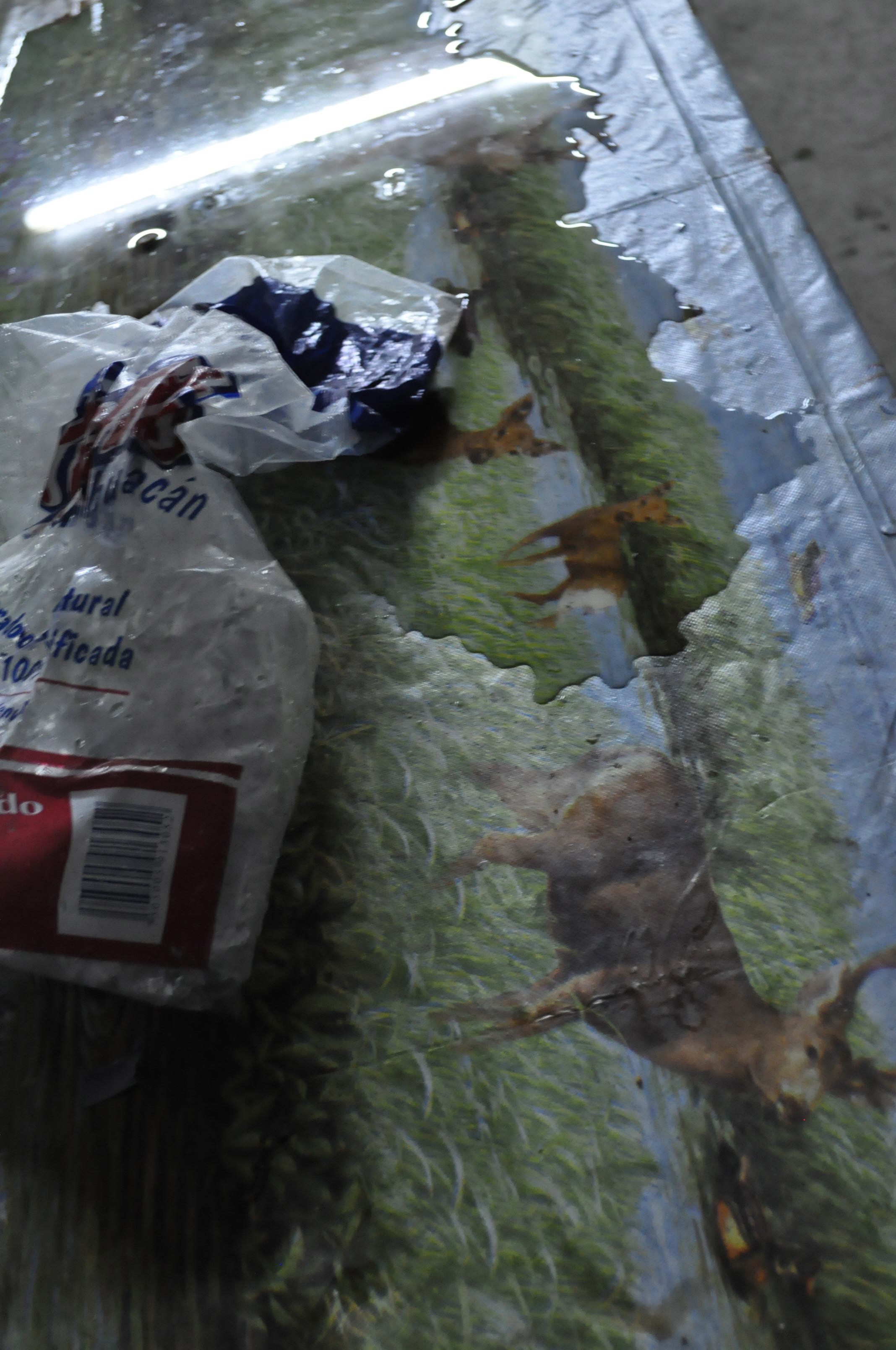 Leaving an ice bag to melt over the table.
