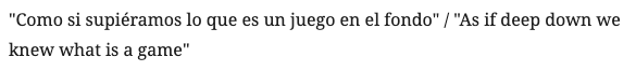 “Como si supiéramos lo que es un juego en el fondo” / “As if deep down we knew what is a game”
